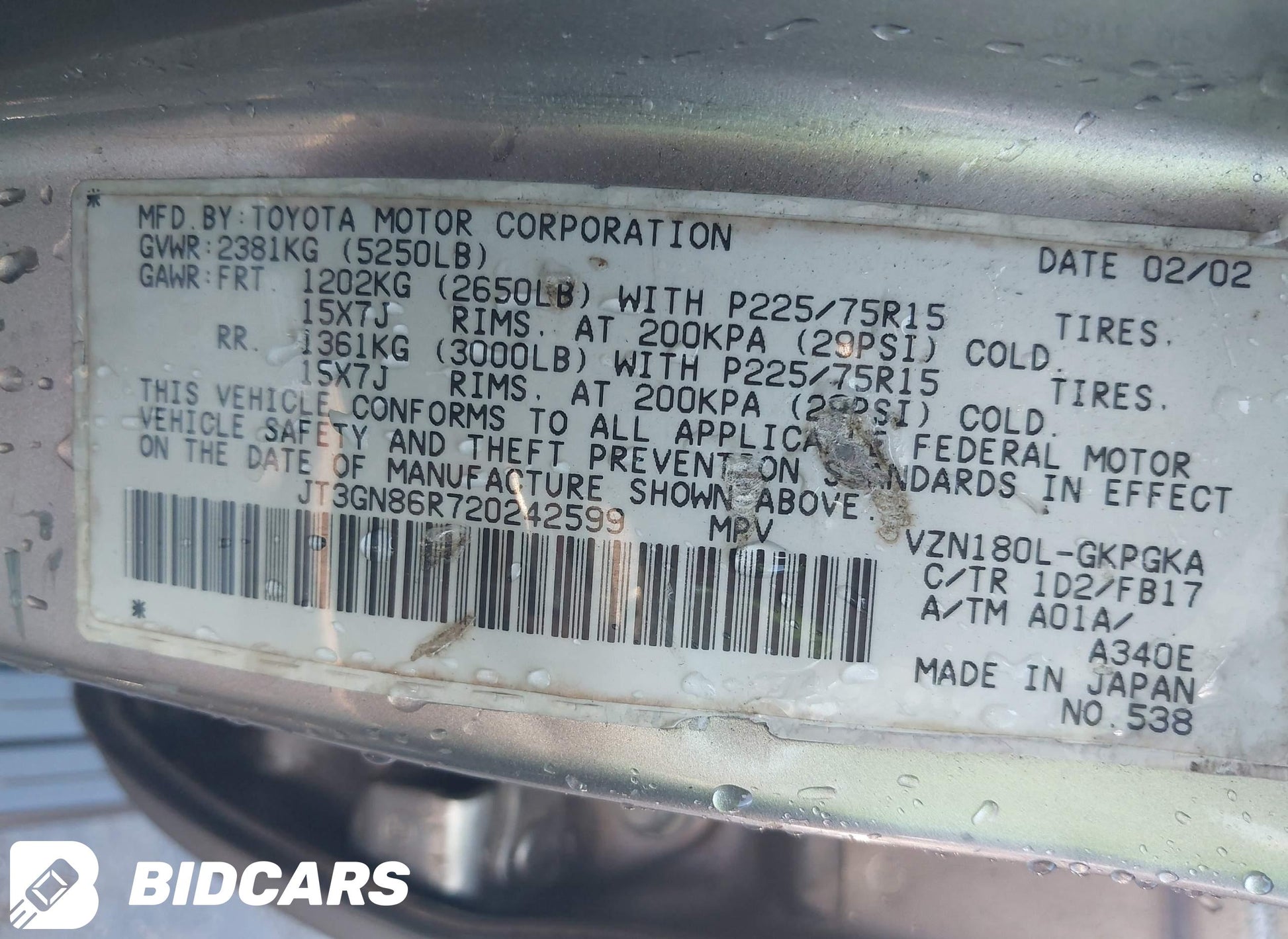 - VIN: JT3GN86R720242599