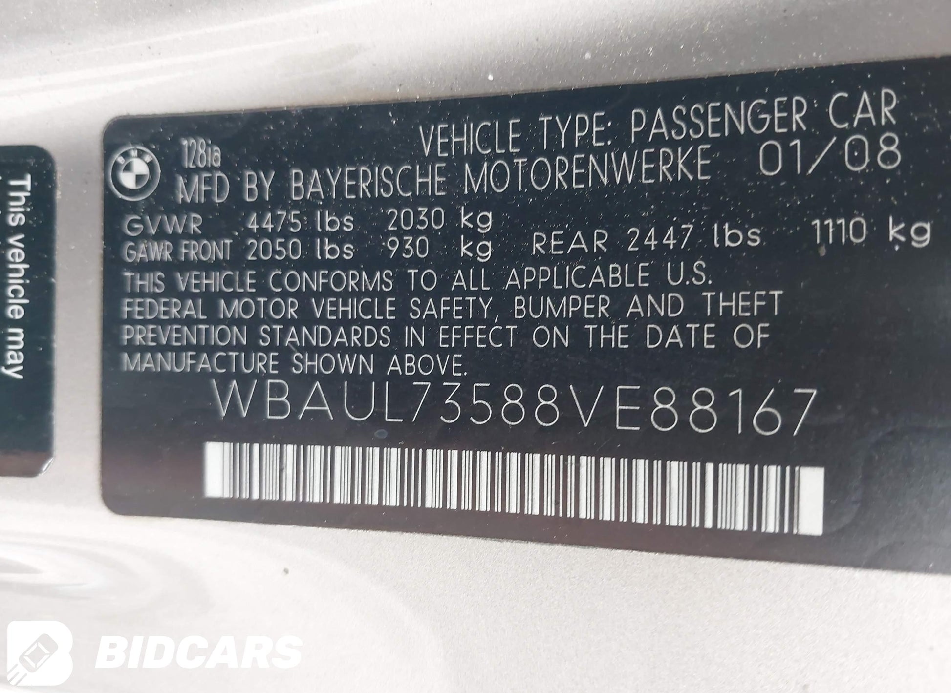 - VIN: WBAUL73588VE88167