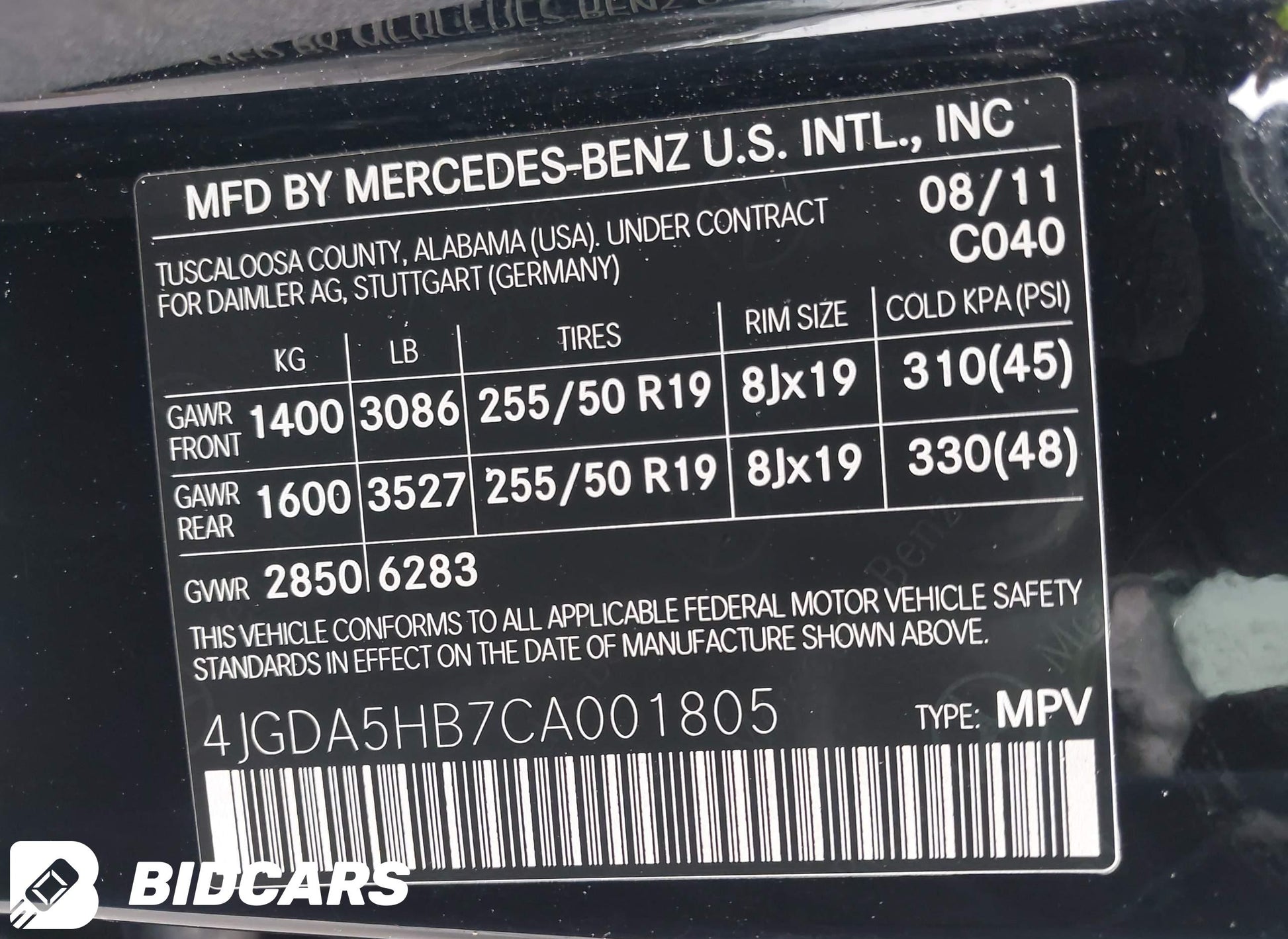 - VIN: 4JGDA5HB7CA001805