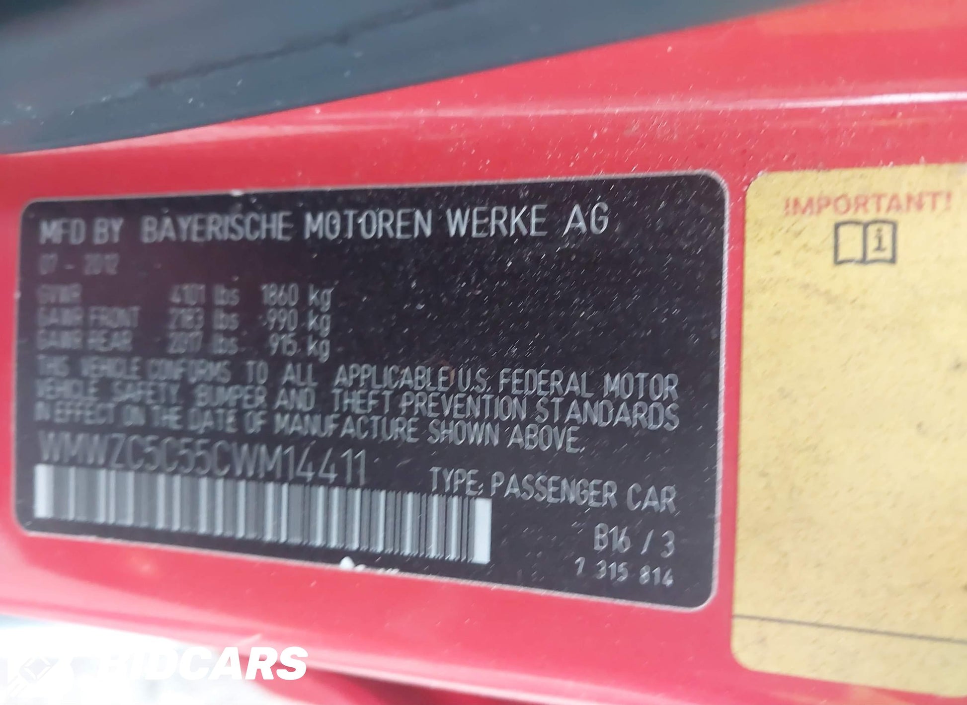 - VIN: WMWZC5C55CWM14411